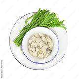 Cooking delicious oysters with greens coastal kitchen food photography natural setting close-up shot