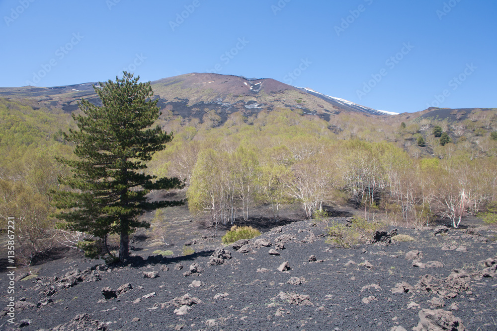 The flora near to the peak of Etna volcano in Sicily, Italy