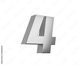 3d Silver number 4 Four sleek metallic look with a slight shadow effect, 3d illustration