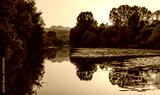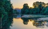 View Chernoyevich's river at the sunset, reflection. Montenegro. Skadar lake, Montenegro.