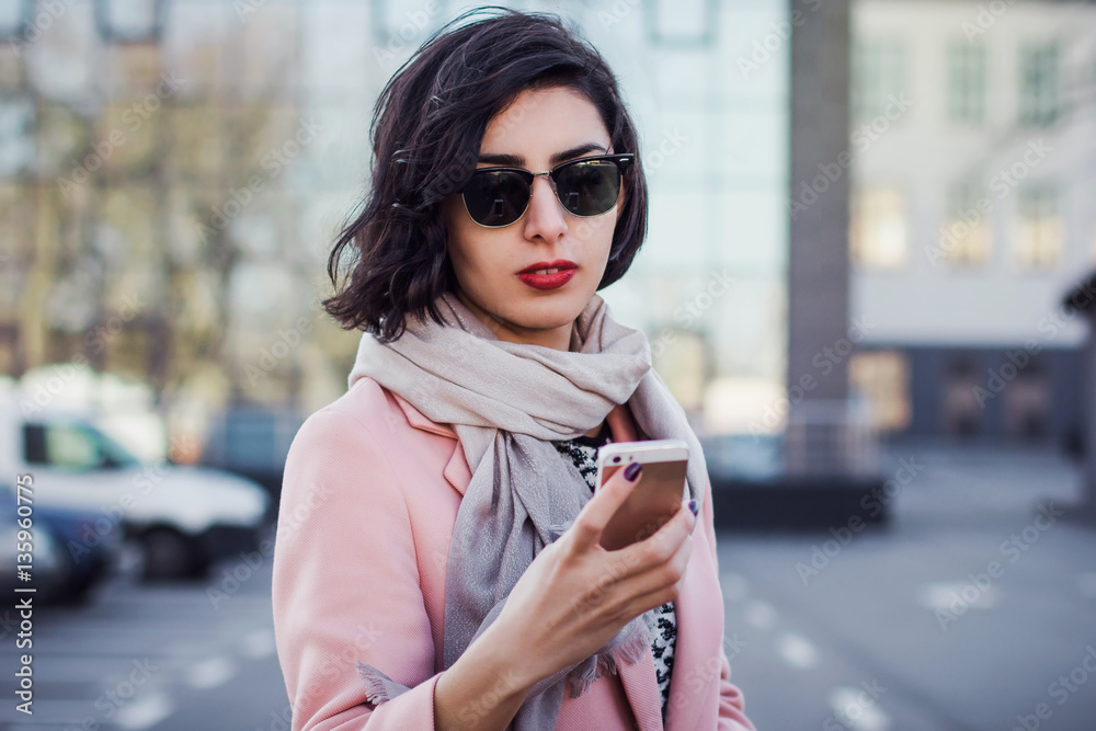 Young woman in sunglasses with phone