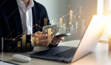 Business development to success with growth graph chart.Increase chart arrow graph corporate business future growth.Financial marketing graph and profit stock market chart.