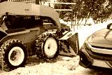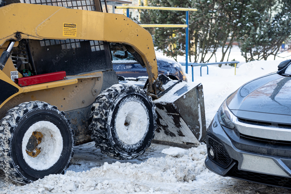 Snow Removal Equipment Positioned Adjacent to a Parked Car in a Typical Winter Setting