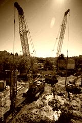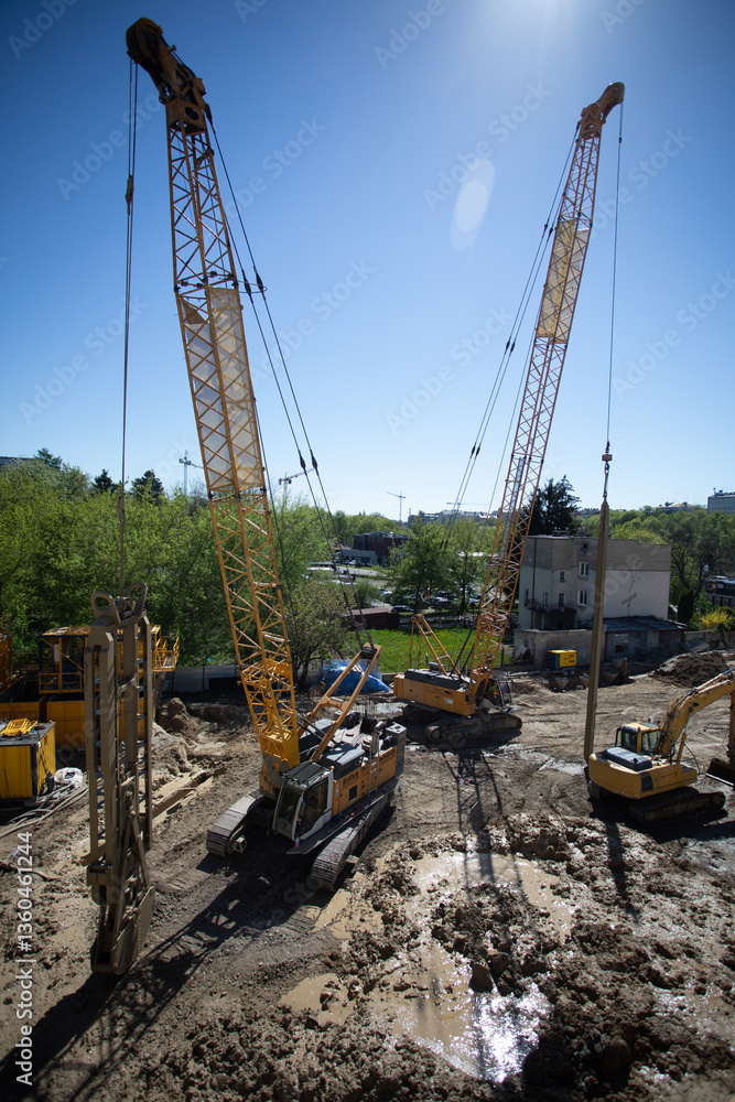 Construction Machinery Busy at Work in an Urban Site Setting Within the Cityscape