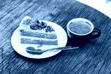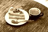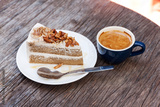 Coffee cake with almond and hot espresso