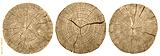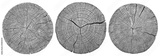 Cross section of tree trunk showing growth rings on white background. wood texture. set
