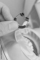 Dentist holding a matrix clamp for dental restoration precision tool for tooth filling treatment oral care professional orthodontic procedure medical equipment hygiene sterile modern technology