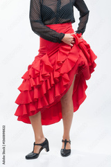 Spanish flamenco dancer in traditional dress isolated on white background for the April Fair