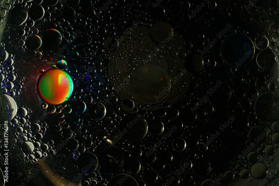 Dark Abstract Macro Bubbles with Light Reflection. Close-up macro shot of black liquid bubbles with a mesmerizing light reflection. Perfect for science, technology, and abstract backgrounds.