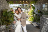 Smiling couple taking a selfie outdoors on a sunny day