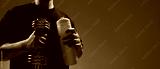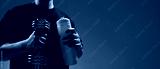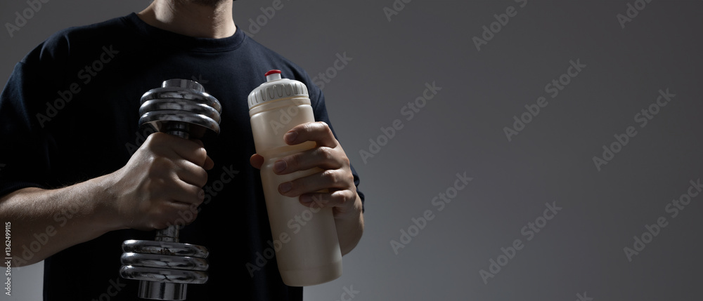 Man holding dumbbell and water bottle