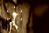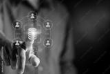 Customer data platform (CDP) concept. Centralized customer data. Businessman touching real time marketing insights.