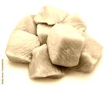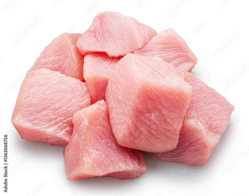 Pile of raw turkey meat pieces isolated on white. File contains clipping path.