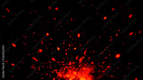 Glowing ember particles drift and flicker against a dark background, creating warm, intense energy with vivid fire sparks and abstract glitter in motion blur.