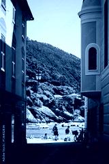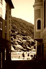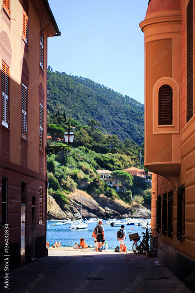Narrow alley and the Beach of Sestri Levante, Liguria, Italy