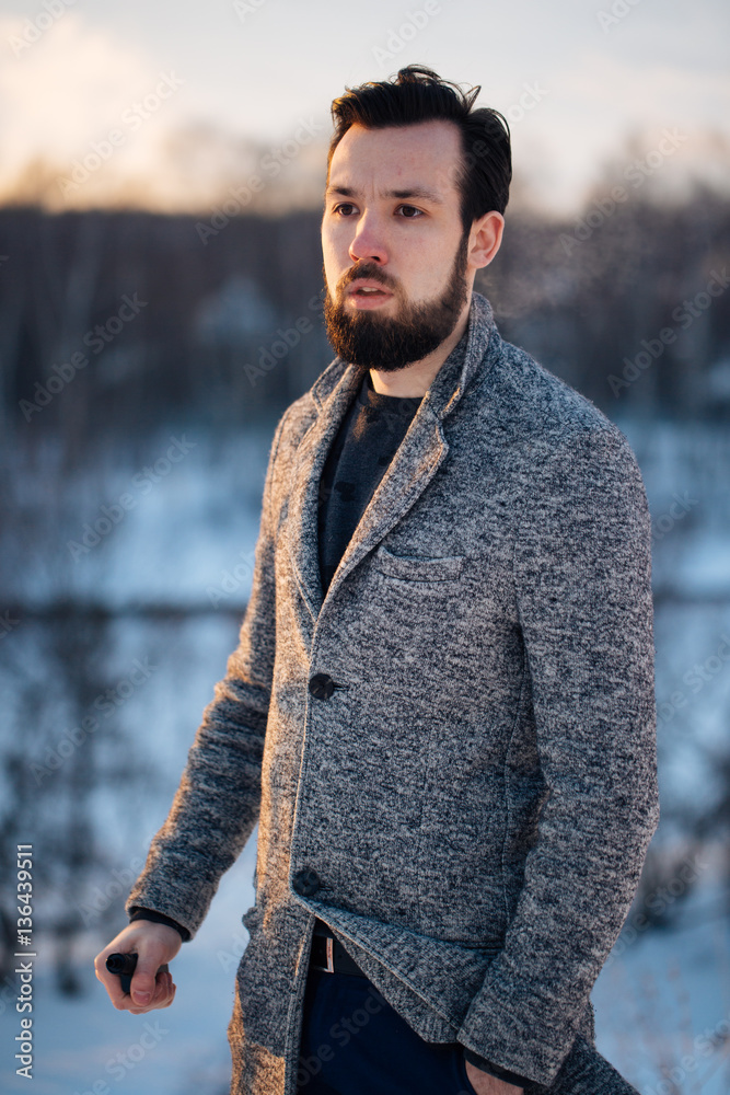 The young guy on the street smoking vape, street fashion with vape steam,vapor e-cigarette
