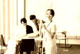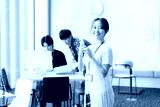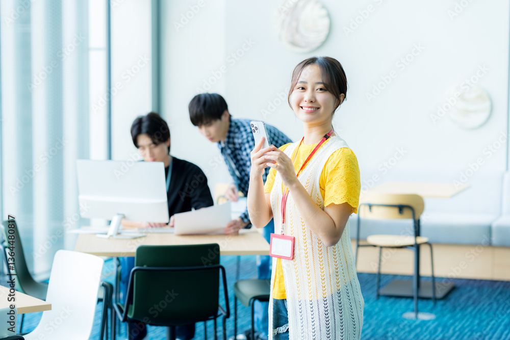 オフィスでスマホを操作する若い女性【撮影協力:スカパー東京メディアセンター】