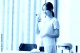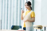 カフェでスマホを見る学生【撮影協力:スカパー東京メディアセンター】