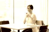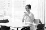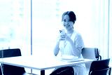カフェでスマホを見る学生【撮影協力:スカパー東京メディアセンター】