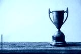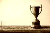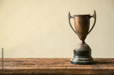 Vintage Trophy on Wooden Table with Neutral Background