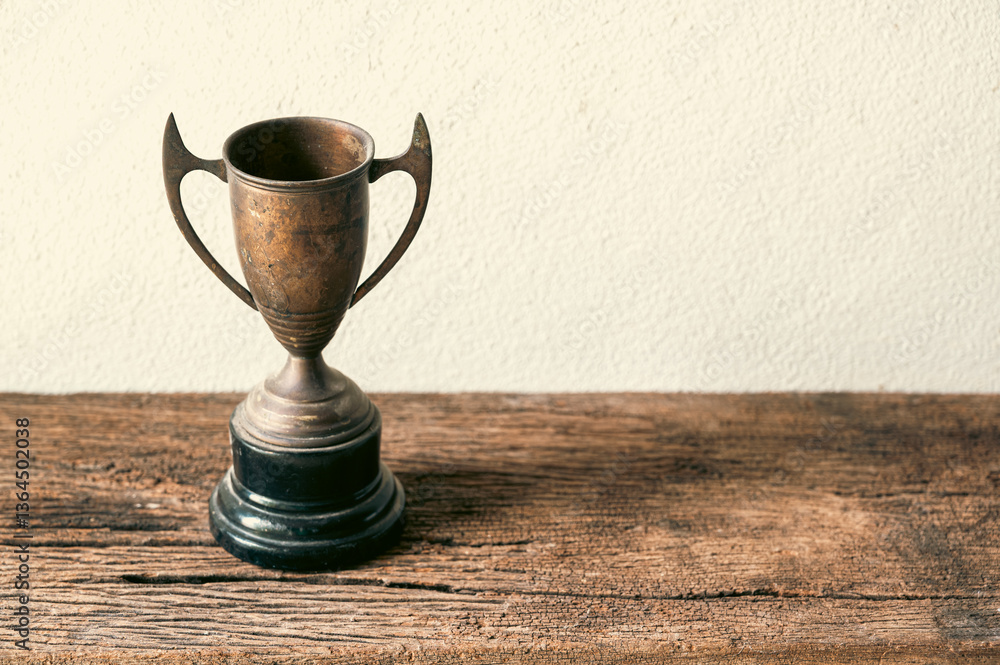 Vintage Trophy on Wooden Surface in Natural Light Setting
