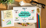 Notebook with Toolls and Notes about Referral Marketing