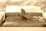 Green leaf on eco friendly brown paper honeycomb wrap for product packaging parcel carton box