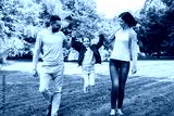 happy family walking in summer park and having fun