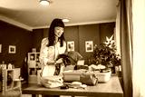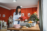 concentrated japanese woman pack her suitcase baggage on table for trip