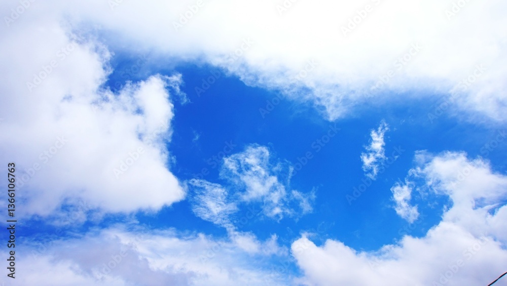 beautiful blue sky with uniquely shaped white clouds, natural and suitable for background