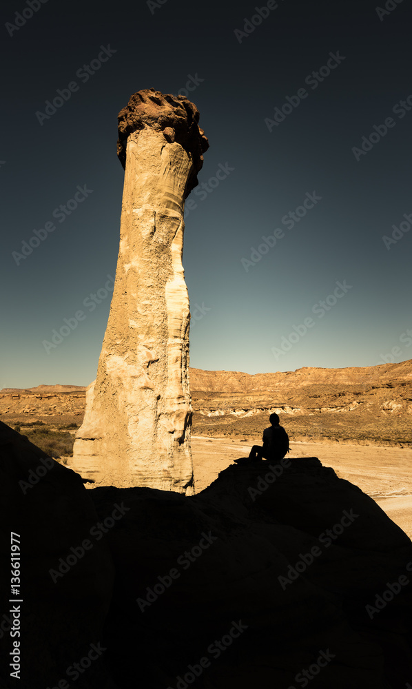 Silhouette of a sitting Backpacker Wahweap Hoodoos near Kanab
