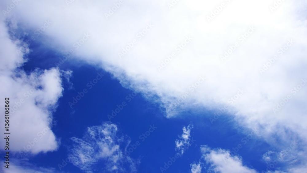 dramatic sky atmosphere, with black clouds, blue sky, and white clouds, creating a unique gradation and expanse of rice fields