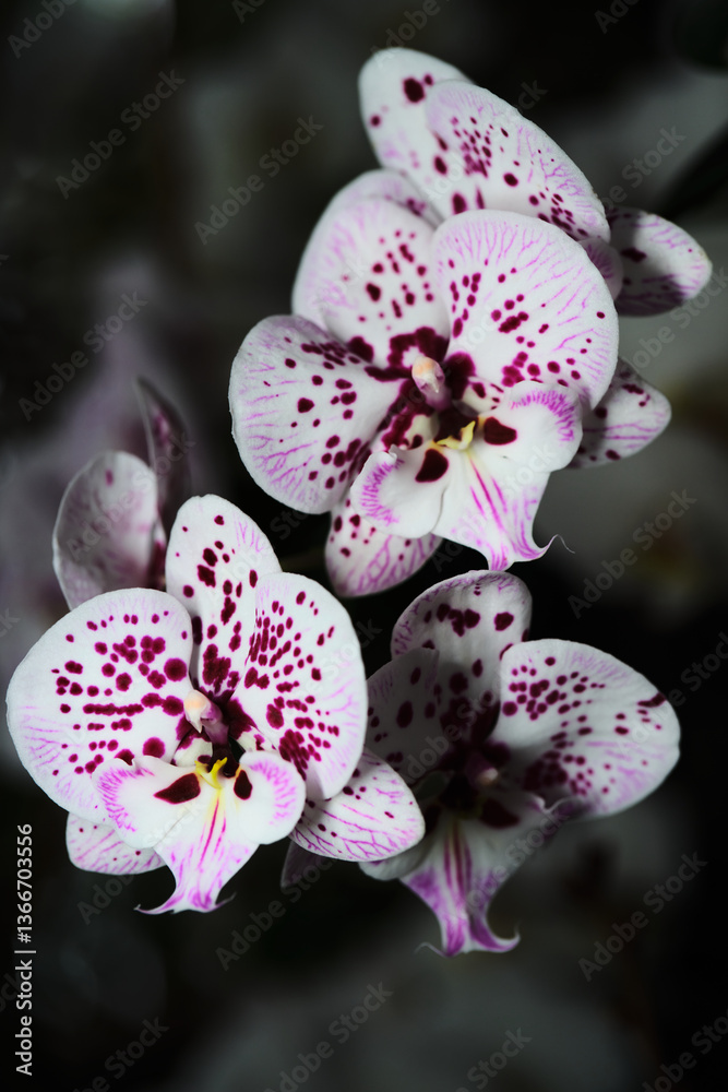 Beautiful pink and white orchids blooming in a garden setting featuring intricate patterns and vibrant colors