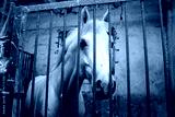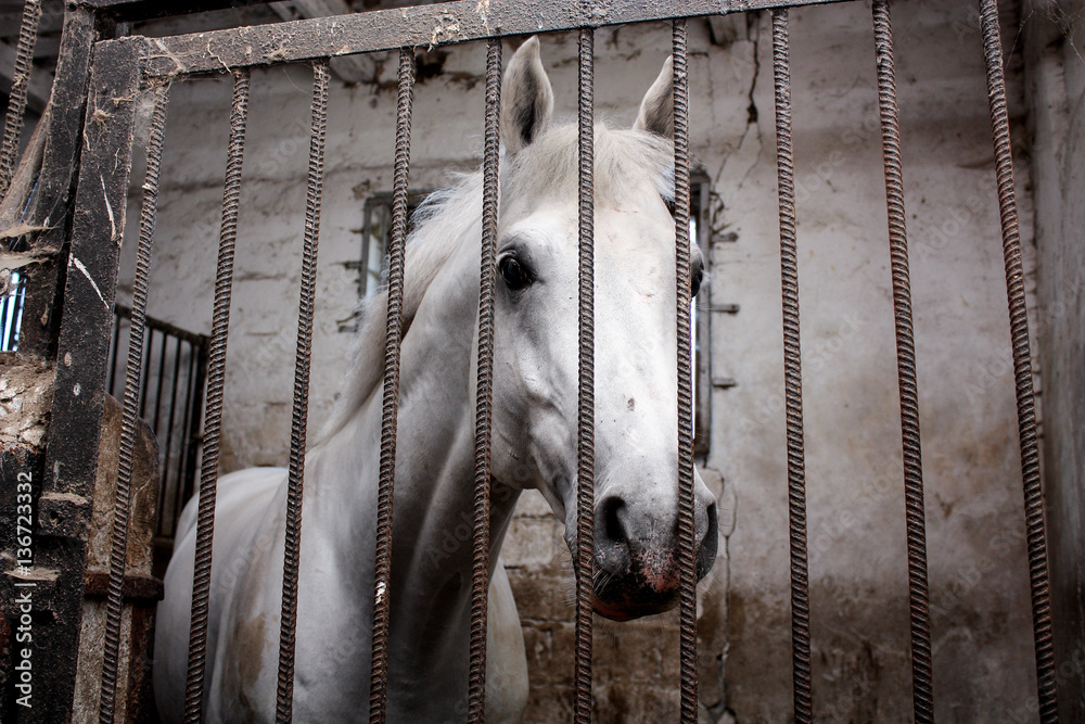 Portrait of white horse in the stall