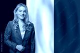 Young happy woman with flag of France