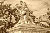 Grace in marble: A helmeted boy in the Parterre Garden of the Royal Palace of Aranjuez, Madrid, Spain