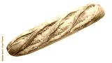 A freshly baked golden brown baguette loaf of bread isolated on white background