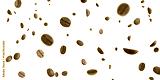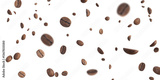 Coffee bean falling background. Black espresso coffee bean flying on white