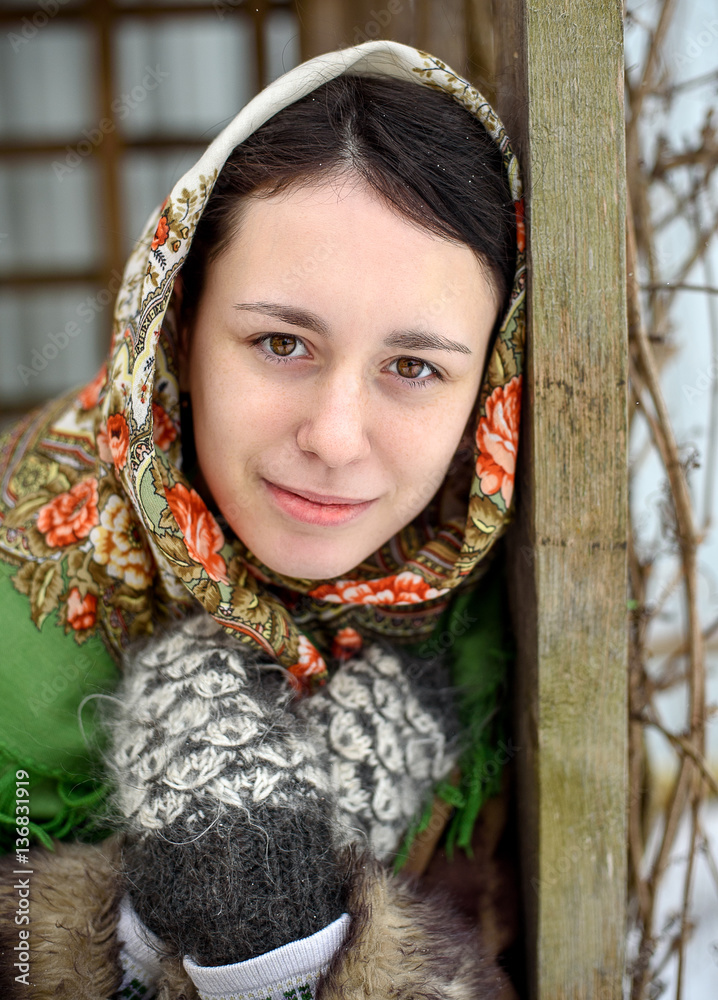 beautiful girl in a traditional Russian scarf