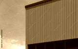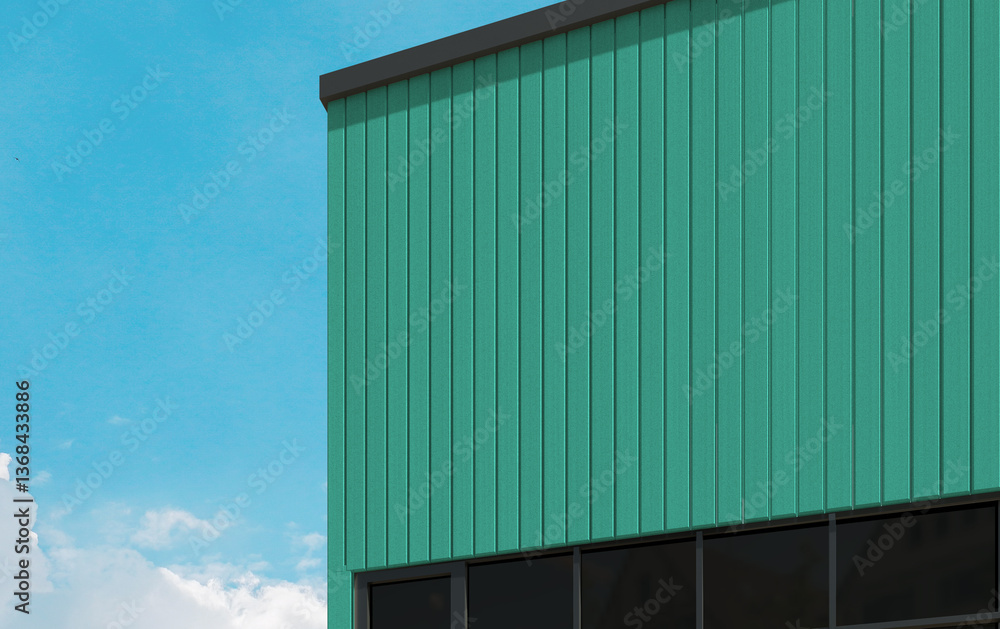 Facade mockup of agreen building with an arched window. Ideal for showcasing architectural design concepts or urban development presentations.