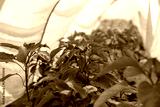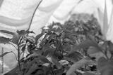 Sweet pepper plants in a greenhouse covered with white material in summer.