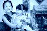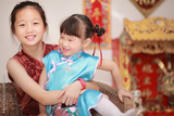 Happy little asian girl in chinese traditional dress on chinese