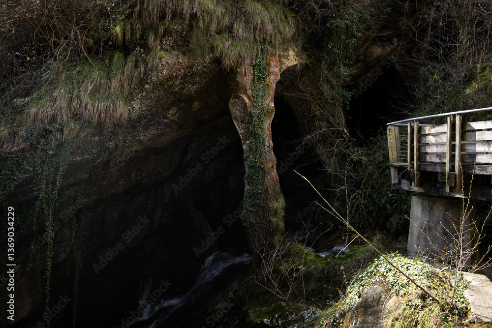 Secured walkpaths over Caves and Gorge of Caglieron Park near Vittorio Veneto Italy