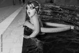 boy dressed in clothes for swimming training, dive in a swimming pool. before diving into the water