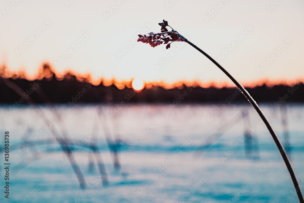 Winter sunset on the lake