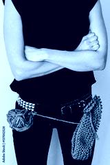 Punk girl with pink wool and needles in pockets