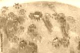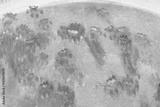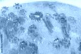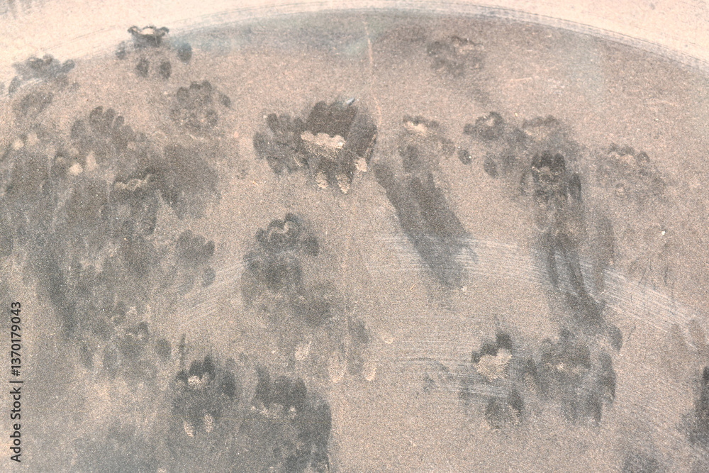 Cat footprints on dirty car rear window. Texture of paw prints on dirty car.