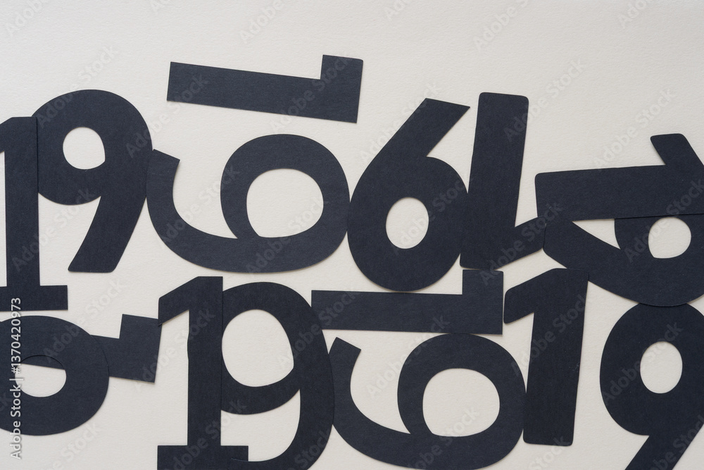 background with the number 19 (or 1 and 9) machine-cut from black paper and arranged on blank paper