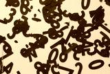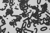 abstract scattered black paper numbers machine-cut on beige paper