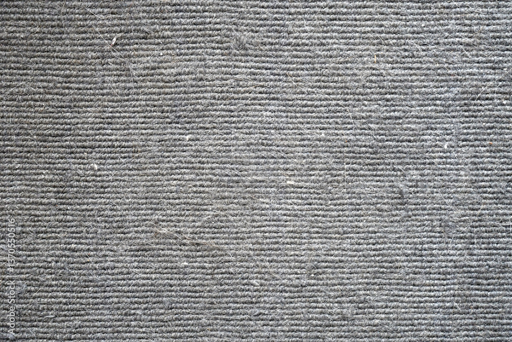 Dirty rug with cat hair and dust in rug. Dirty rug or carpet texture background. The concept of how to remove pet hair and dust in carpet.